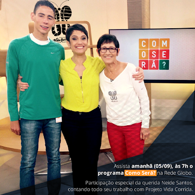 Agora o mistério foi desvendado, o nome do programa é “Como Será?” e amanhã às 07:00 da manhã, na Rede Globo vai ao ar a entrevista com a querida e guerreira Neide ‘Vida Corrida’, onde ela contará a sua história, a história do Projeto Vida Corrida e como a ONG no Capão Redondo consegue ajudar e dar esperanças para tantas famílias, o projeto vai muito além de ajudar só crianças, ou só mulheres ou só qualquer coisa, ele transforma a vida da comunidade do Parque Santos Dias e também de muitos amigos do mundo todo que de alguma forma ajudam.